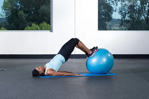 Ležeći na leđima, stopala postavite na povišenu i stabilnu podlogu. Aktivirajte noge i podignite kukove dok tijelo ne formira ravnu liniju od ramena do koljena.